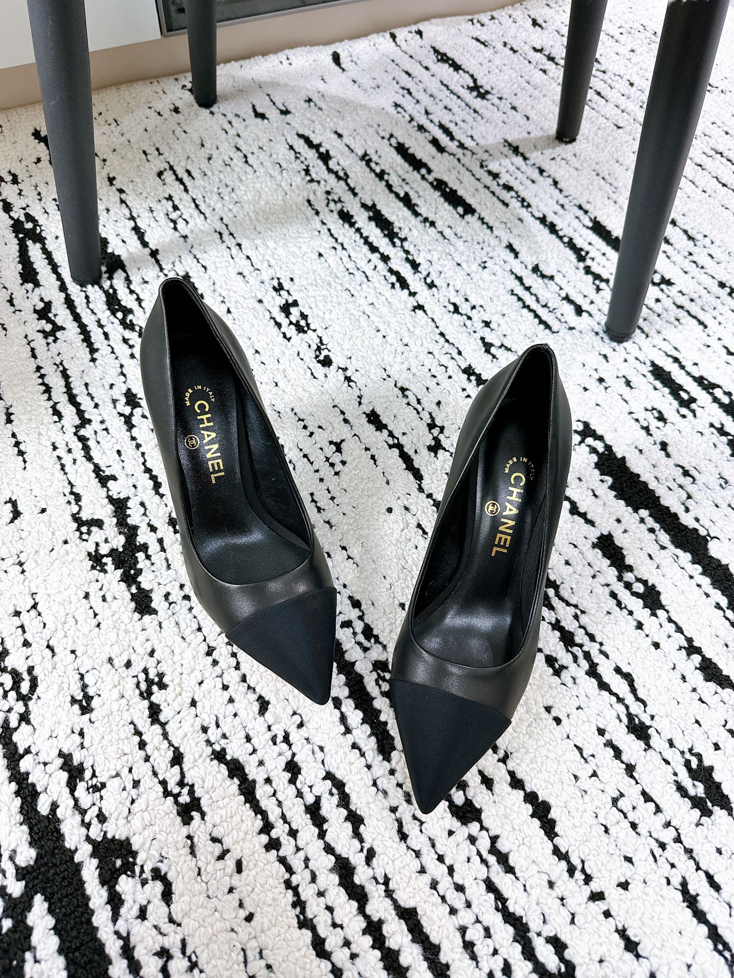 Chanel Black Leather and Fabric CC Faux Pearl
